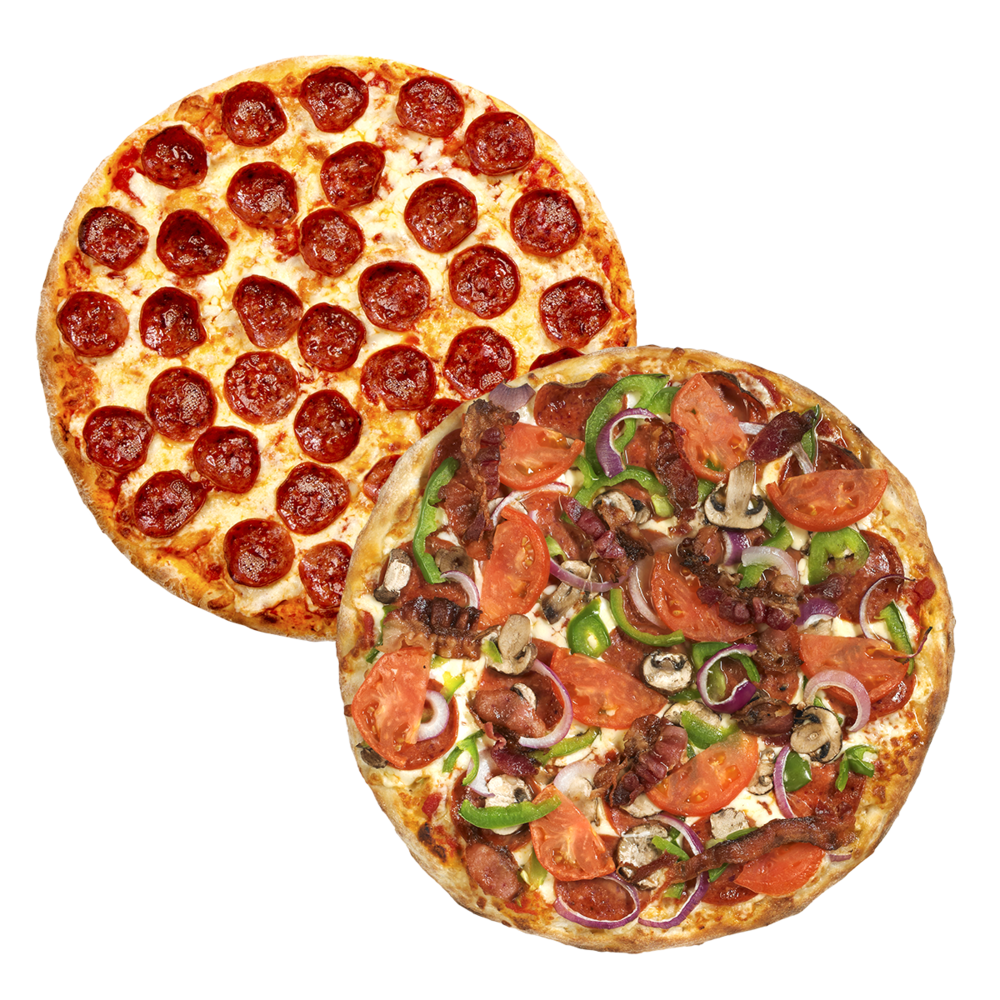 2 Large Pizzas, 6 Toppings between the two
